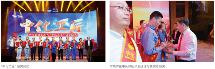 文藝匯演期間舉行了中化集團第二屆“中化工匠”頒獎儀式。在此前的評選中,經(jīng)過層層篩選,最終10名來自一線的員工獲此殊榮,他們用自己的實際行動生動的詮釋了“敬業(yè)、精益、專注、創(chuàng)新”的“中化工匠”精神。寧高寧、楊華分別為“中化工匠”頒發(fā)獎杯和獲獎證書。