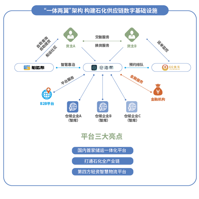 在商業模式上,通過運用新技術,將傳統石化供應鏈上原本割裂的商流、物流、信息流、資金流等數據打通,促使“倉儲”這個沉默的黑箱子能得以開口“說話”,同時實現產業鏈各個環節可視、協同和優化,幫助石化企業以更低的運行成本、更高的運行效率來支持倉儲物流管理,從而更好地專注于核心業務。
