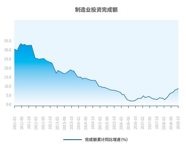 2018年制造業(yè)投資增速持續(xù)上升,在全年信用趨緊的背景下,制造業(yè)能夠繼續(xù)加大投資實屬不易。從2018年的制造業(yè)投資增速看,主要來自鋼鐵、有色金屬、非金屬礦物質(zhì)等中上游行業(yè)領(lǐng)域。受供給側(cè)改革影響,上述行業(yè)在過去一段時間產(chǎn)能削減較大,市場處于出清、補庫存狀態(tài)。