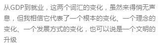 在今年的報告中,李克強總理沒有像過往一樣太強調GDP,他更強調的是另外一個詞:就業。報告里說,要使更加公平、更加充分的就業成為我國發展的突出亮點。在參加政協經濟界的討論時,總理也說,就業應該成為首要經濟目標。